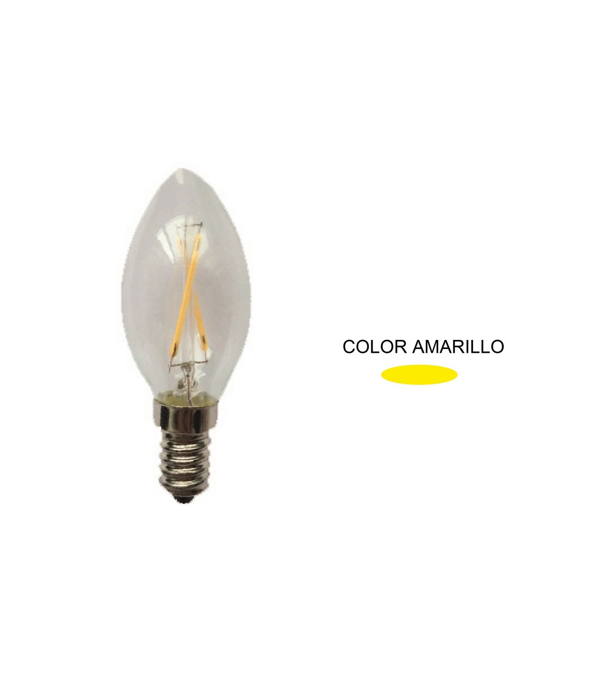 LAMPARA VELA FILAMENTO LED AMARILLA E14 1,5W 360º 230V