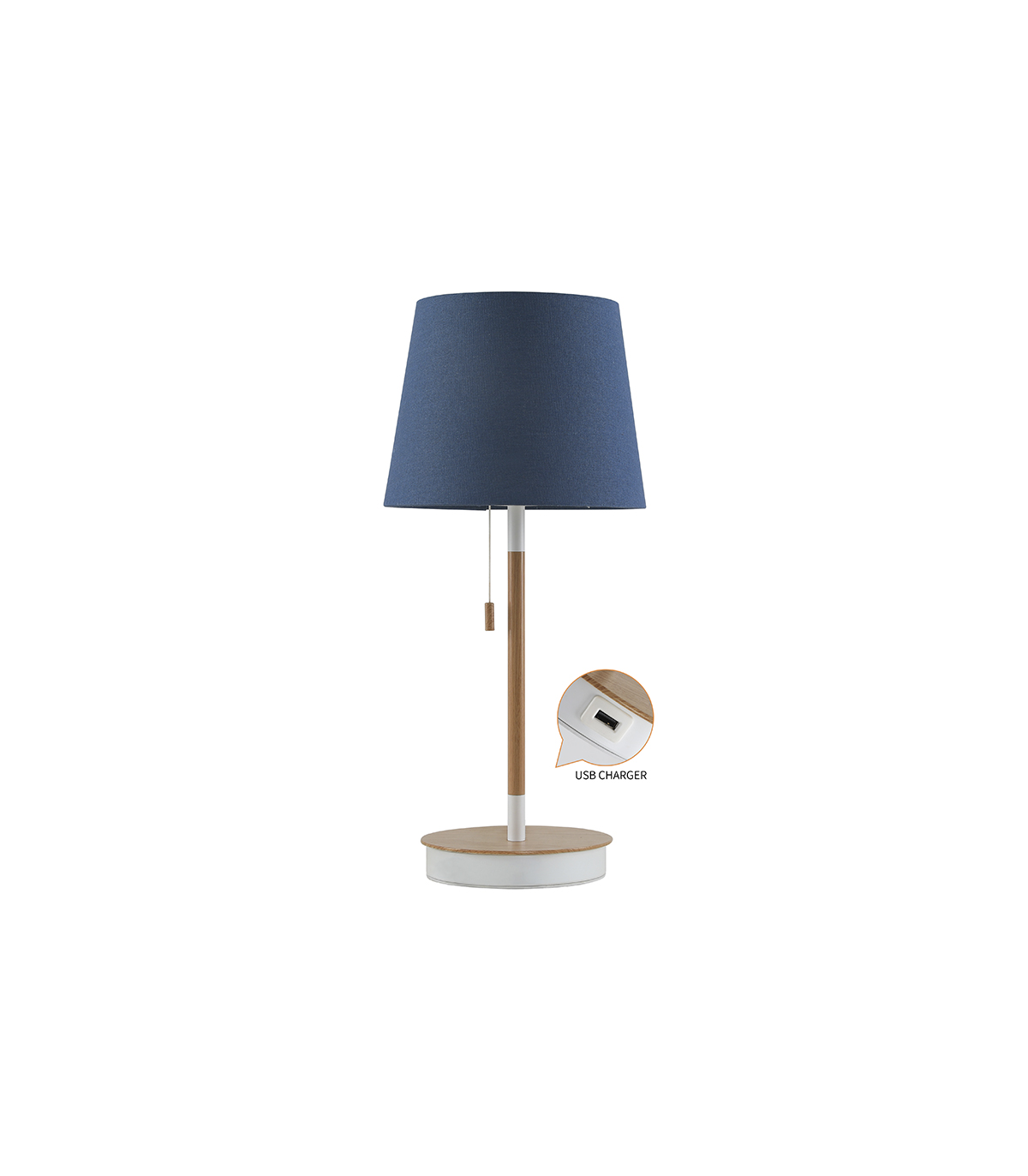 LAMPARA DE MESA MADERA+AZUL CON CARGADOR USB E27