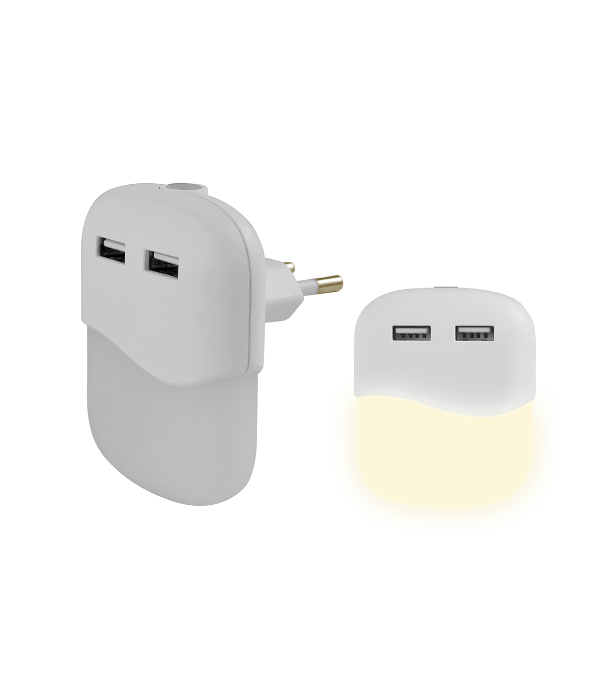 PILOTO LUZ NOCTURNA LED CON SENSOR CREPUSCULAR 2 USB 2A 0.5W 3000K CUADRADO BLANCO