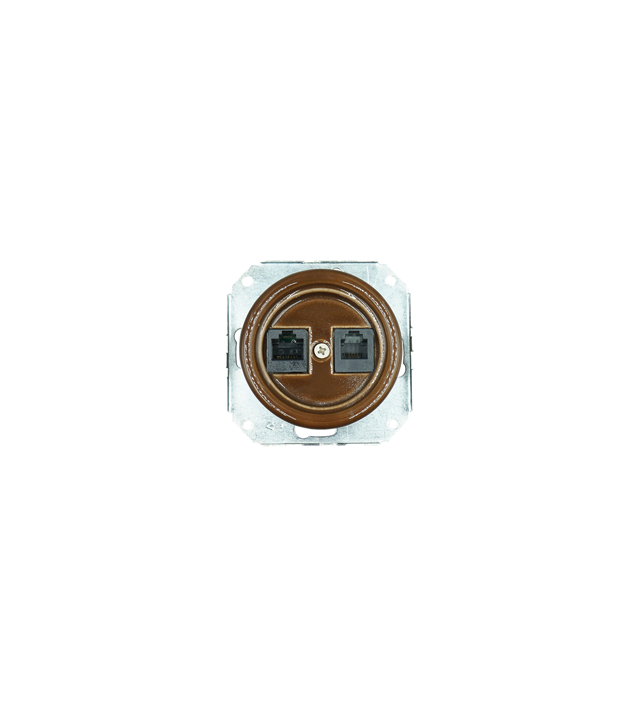 BASE EMPOTRAR PORCELANA RJ45+RJ11 SIN MARCO MARRON