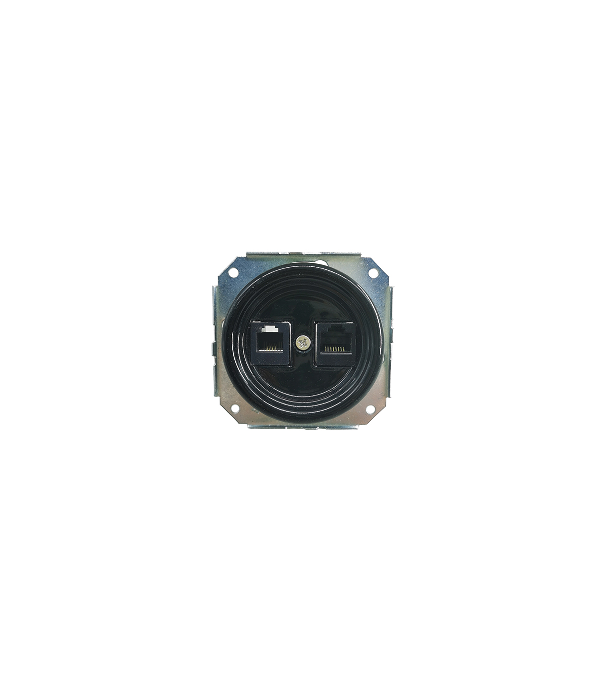 BASE EMPOTRAR PORCELANA RJ45+RJ11 SIN MARCO NEGRA