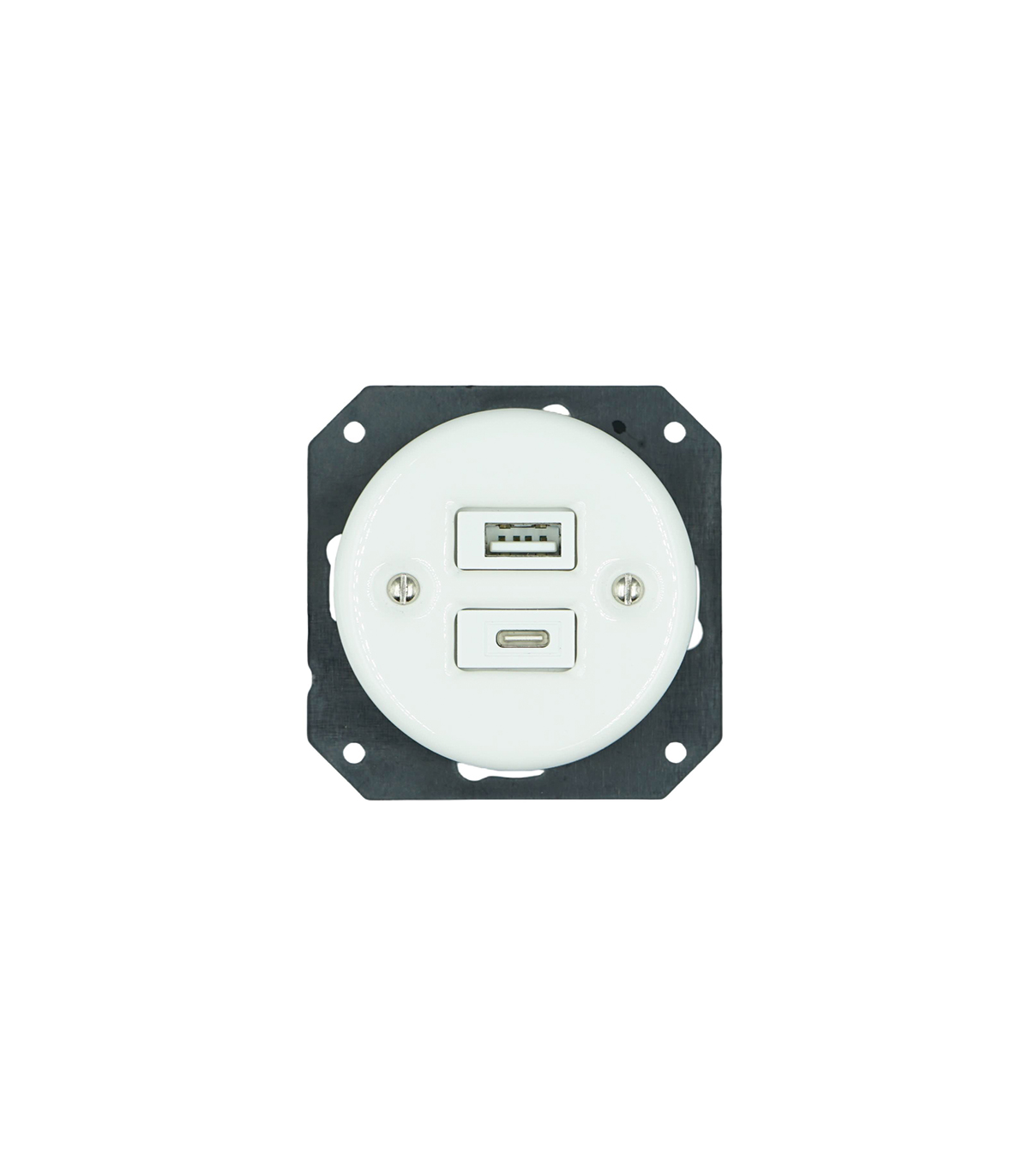 BASE EMPOTRAR PORCELANA USB TIPO A+ USB TIPO C BLANCO SIN MARCO