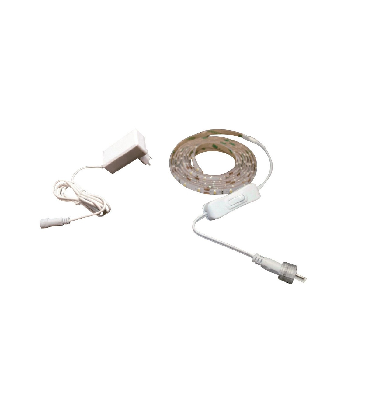 TIRA LED DOMESTICA IP44 BLISTER 24W 3000K 12V 5MTx8MM 60LED/MT LED35x28 con transformador+ interruptor