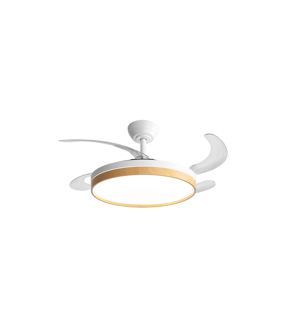 VENTILADOR DE TECHO ASPAS PLEGLABLES 30W DC LED INTEGRADO 36W BLANCO + MADERA CAMBIO DE TONO CON MEMORIA